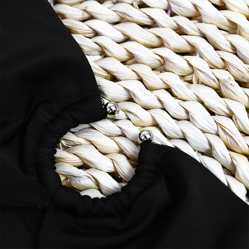 Czarny strój kąpielowy z wycięciami na brzuchu to zmysłowa propozycja dla kobiet ceniących styl i odważne fasony. Asymetryczne wycięcia podkreślają talię i dodają sylwetce lekkości, optycznie ją modelując. Złote detale – w formie ozdobnych elementów – dodają elegancji i luksusowego charakteru.