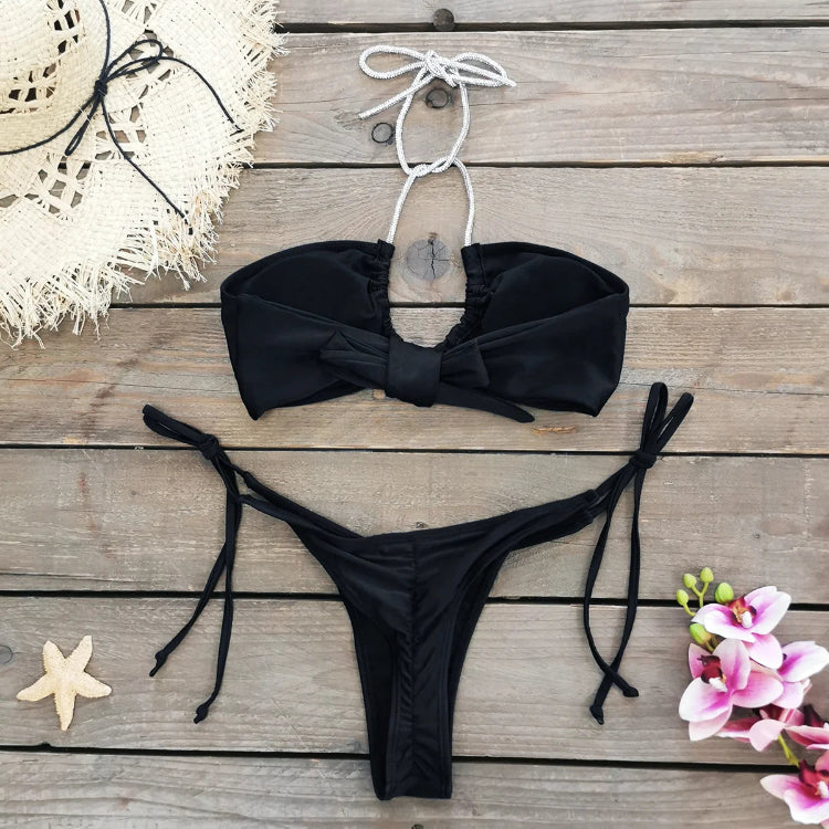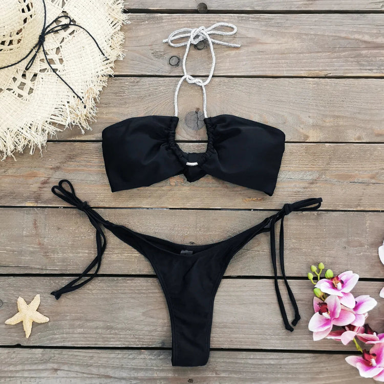 Strój kąpielowy z diamentowymi wstawkami
