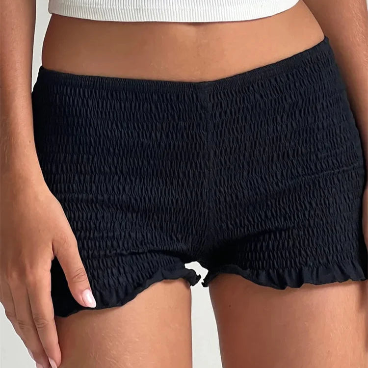 Szorty o marszczonej strukturze to idealna propozycja na lato. Wykonane z lekkiego, elastycznego materiału dopasowują się do sylwetki, zapewniając swobodę ruchów i komfort noszenia. Delikatne falbanki przy nogawkach dodają kobiecego uroku. Świetnie komponują się z prostym topem, tworząc wygodny i stylowy zestaw na co dzień. Idealne zarówno do chodzenia po domu, jak i na luźne, letnie wyjścia.